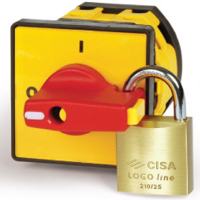 AZ0401 | Желт.площадка и красн.ручка под замок, 48х48, на винты