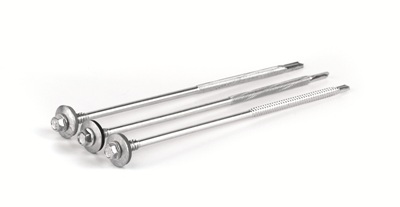 Самосверлящий самонарезающийся винт с шайбой используется для крепления к сэндвич-панелям несущих конструкций и молниеотводных полос. Длина винта-185 мм.