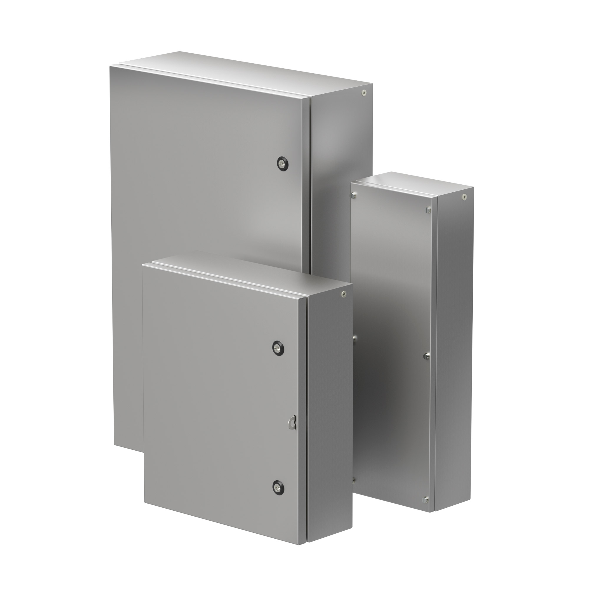 Взрывозащищенная оболочка из нержавеющей стали AISI 304 для индивидуальной комплектации, типа "Шкаф", с габаритами 260х260х150 мм применяется для самостоятельного изготовления взрывозащищенных клеммных коробок Ex e, Ex tb. Ex i, постов и шкафов управления Ex de, Ex tb, Ex i.