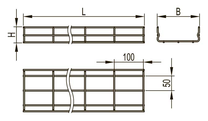 Прямые элементы проволочных лотков предназначены для прокладки прямых участков кабельной трассы шириной 100мм и высотой 100мм, а также для изготовления поворотов и разветвлений кабельной трассы, преимущественно внутри помещений, обеспечивая удобство и порядок в организации кабельных трасс.