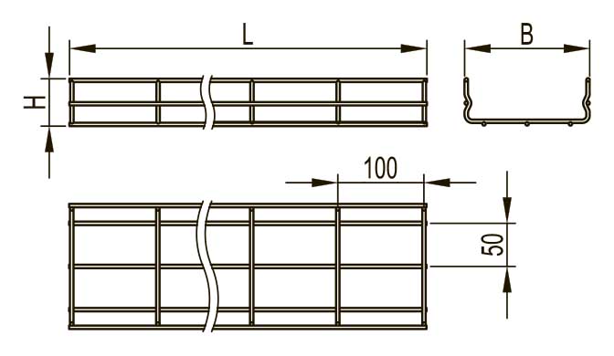 Прямые элементы проволочных лотков предназначены для прокладки прямых участков кабельной трассы шириной 100мм и высотой 30мм, а также для изготовления поворотов и разветвлений кабельной трассы, преимущественно внутри помещений, обеспечивая удобство и порядок в организации кабельных трасс.