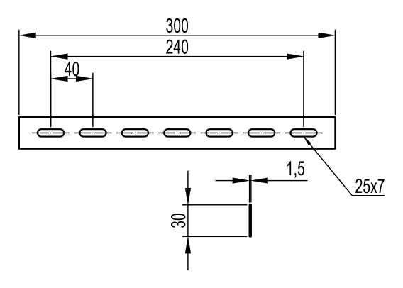 Соединитель с семью отверстиями применяется как для соединения проволочных лотков между собой, так и для соединения проволочных лотков с листовыми лоткам, кроме того с помощью соединителя возможно изготовление ряда системных аксессуаров (редукция или поворот с большим радиусом).