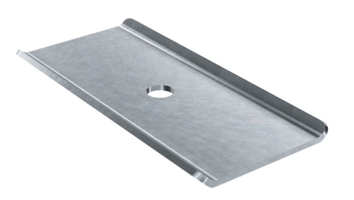Пластина соединительная с отверстием по центру применяется для соединения между собой проволочных лотков с высотой борта 50, 80 или 100 мм.