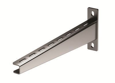 Усиленная консоль предназначена для монтажа нагруженных кабельных трасс. Она крепится на стену, в подвес или в профили. Аксессуар совместим с лотками шириной 200 мм и расчитан на нагрузку 450 кг.