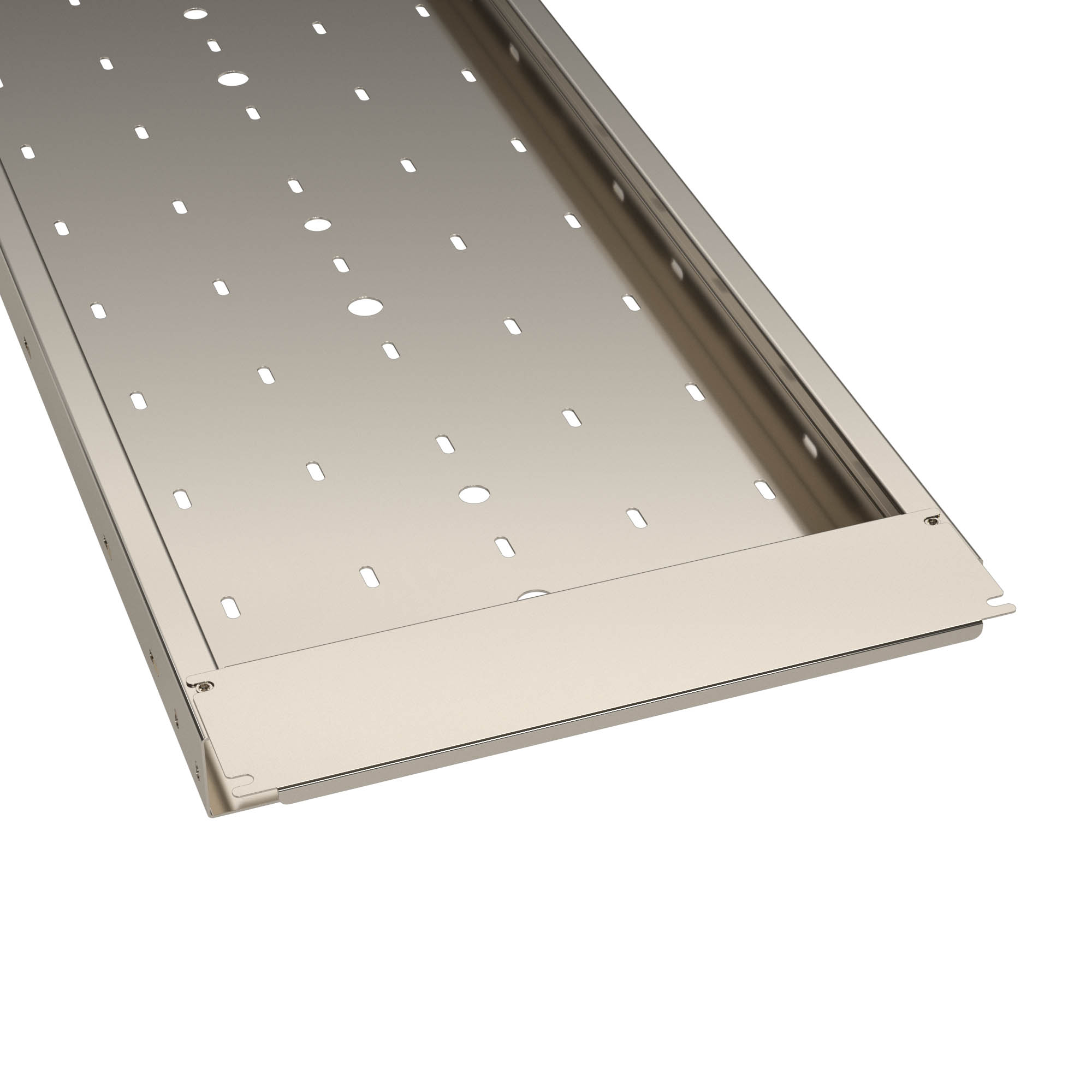 Пластина для увеличения жесткости крышек предотвращает появление прогиба. Монтируется между лотком и крышкой через каждые 1,5 метра. Для крепления пластины не требуется дополнительных метизов – крепление осуществляется на те же винты, на которые крепится крышка. Подходит для крышек лотков "I5 Combitech" шириной 400 мм.