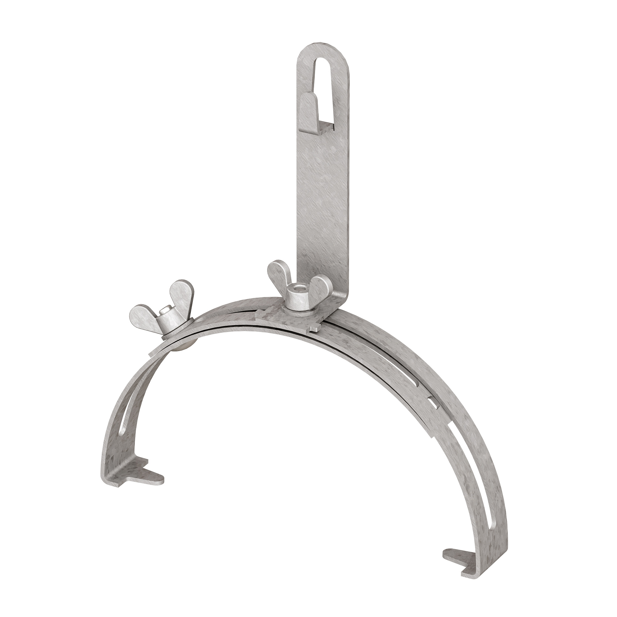 Регулируемый коньковый зажим применяется для фиксации молниеприемной сетки на круглом коньке кровли. Проводник крепится безвинтовым зажимом с применением плоскогубцев. Диапазон зажима-125-205 мм. Материал-горячеоцинкованная сталь.