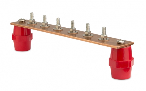 Главная заземляющая шина (ГЗШ) объединяет нулевые защитные и нулевые рабочие проводники питающей линии, выводы контура заземления, заземляющие проводники, проводники системы уравнивания потенциалов. Место установки ГЗШ должно быть защищено от случайного прикосновения. Материал шины-медь, в комплект также включены метизы (болты, гайки, шайбы) из нержавеющей стали. Количество подключений проводника-20.
