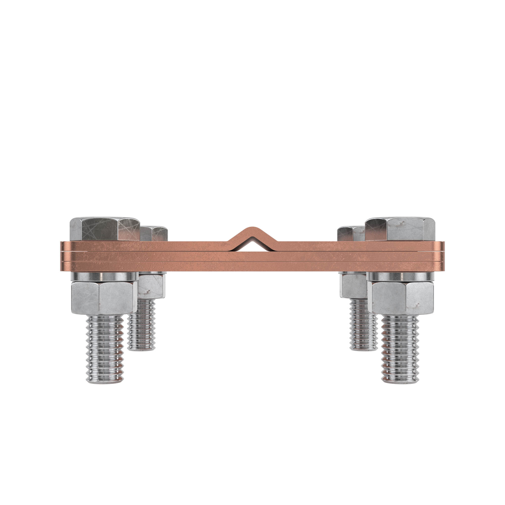 Соединитель "пруток-полоса" с разделительной пластиной используется для параллельного либо крестового соединения прутка 8-10 мм с полосой 25-50 мм. Материал-медь.