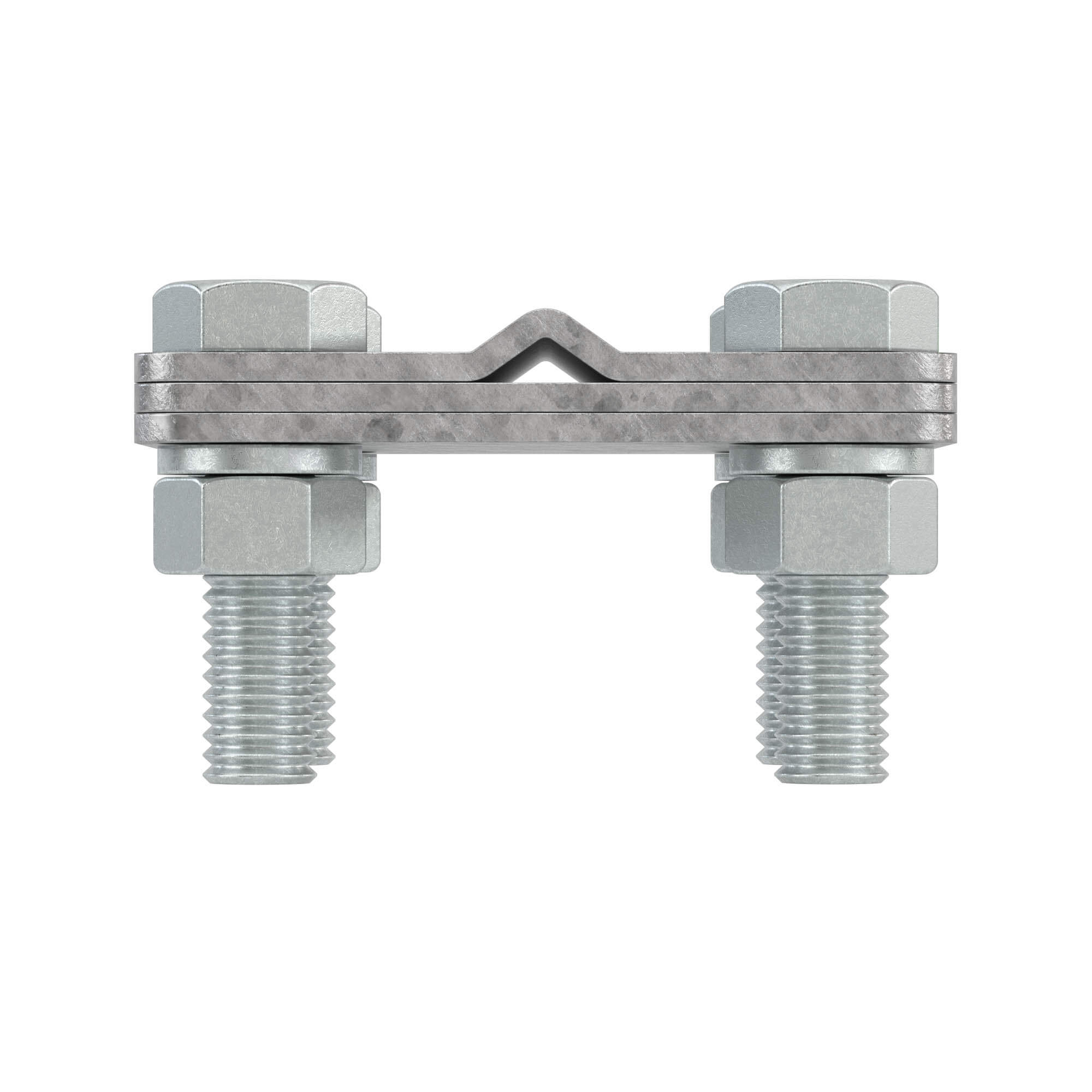Соединитель "пруток-полоса" с разделительной пластиной используется для параллельного либо крестового соединения прутка 8-10 мм с полосой 25 мм. Материал-горячеоцинкованная сталь.