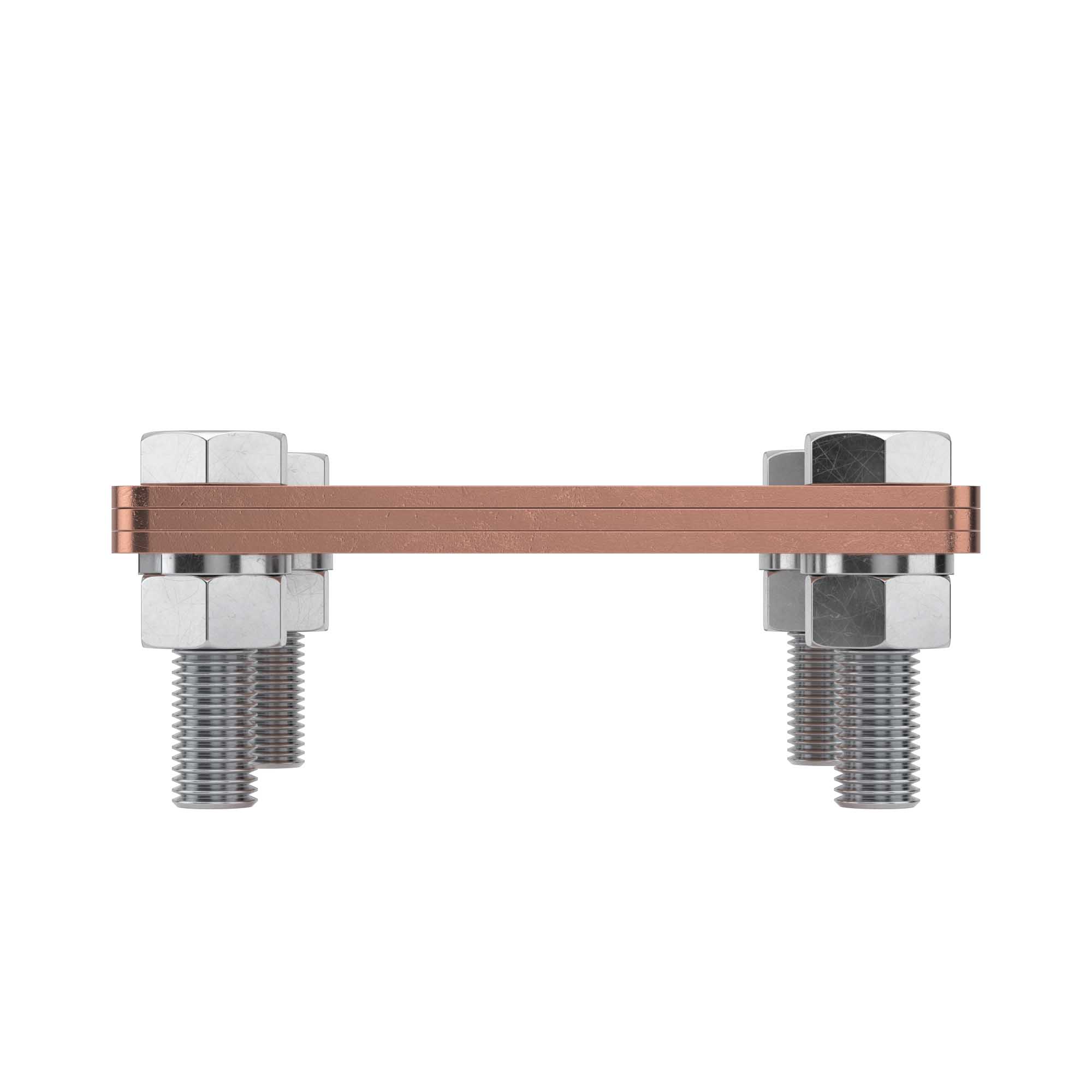 Соединитель "полоса-полоса" применяется для параллельного либо крестообразного соединения плоских проводников шириной 25-40 мм. Материал-медь.