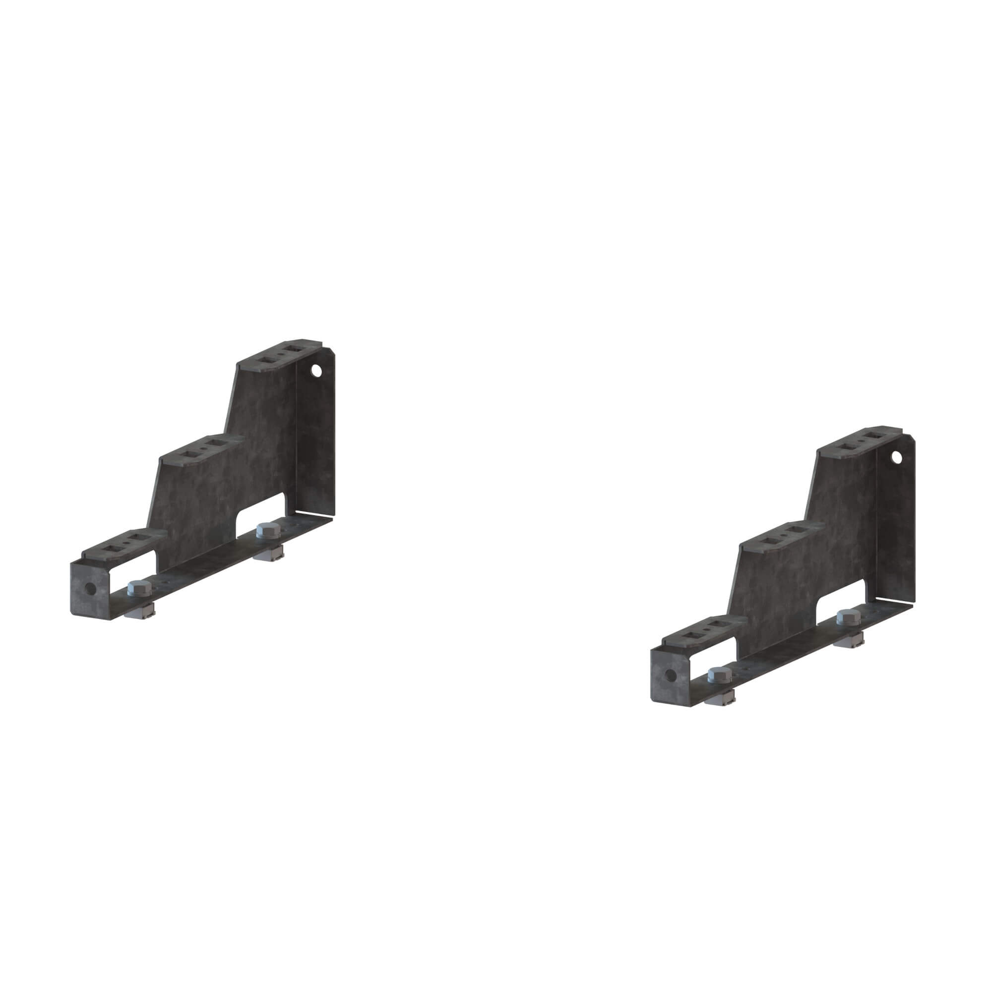 Опорные кронштейны из оцинкованной стали для 3 - полюсной ступенчатой шинной системы. Предусматривает винтовое крепление изоляторов.