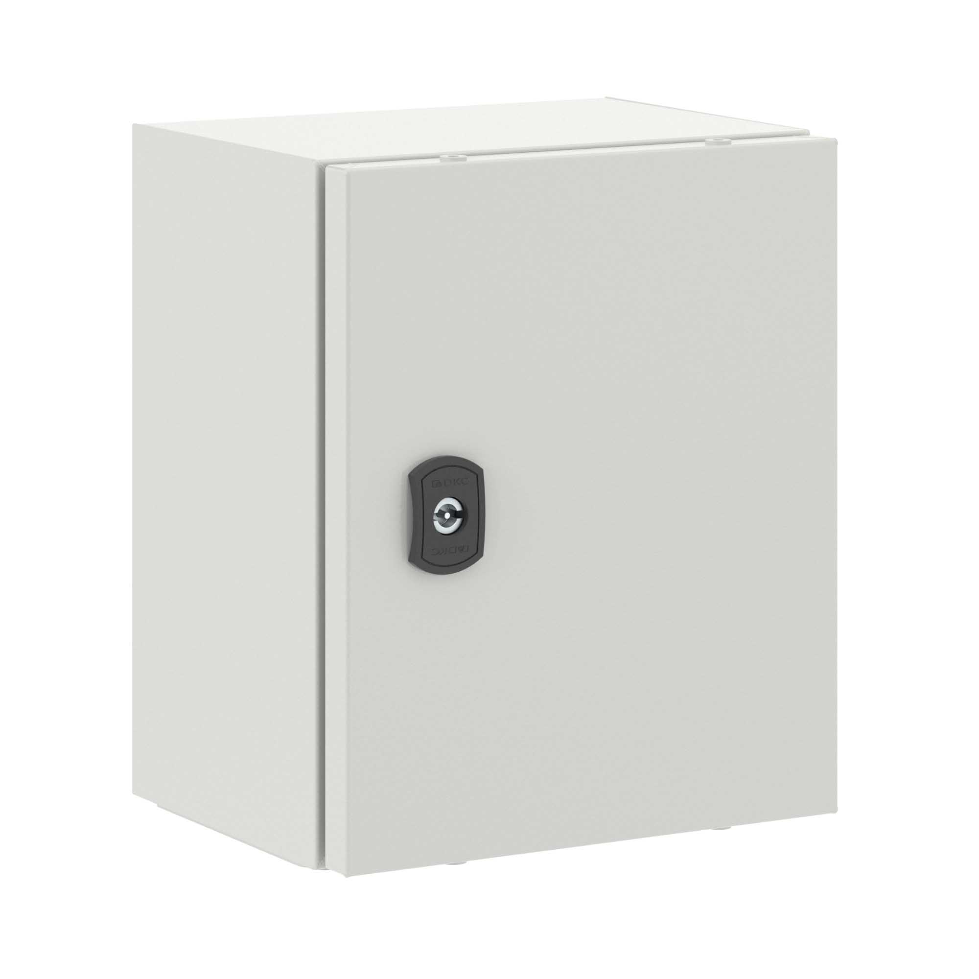 Навесные корпуса STE предназначены для систем автоматизации и распределения электроэнергии. Корпус, дверь, фланец STE изготавливаются из стали толщиной 1,5 мм с атмосферостойким порошковым покрытием, цвет RAL7035. Монтажная плата - из оцинкованной стали 1,8 мм. Корпуса выполнены по технологии сварки из единого листа металла, что обеспечивает высокую нагрузочную способность и защиту от вибраций. Степень защиты IP66, ударопрочность IK10, сейсмостойкость 9 баллов по шкале MSK - 64, климатическое исполнение УХЛ1, ОМ2, ОМ3, группа горючести Г1. Комплект поставки: корпус, дверь реверсивная, монтажная плата, поворотный замок 1 шт., сплошной фланец для ввода кабеля 1 шт., комплект заземления с проводами заземления. Габариты 300x250x200 (ШхВхГ) мм.