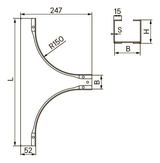 Ответвитель универсальный DL предназначен для организации как Т-образного, так и Х-образного отвода трассы в горизонтальной плоскости, либо Т-образного ответвления вниз в вертикальной плоскости при условии монтажа без крышки. Совместим с лотками высотой 100 мм и основанием 100 мм.