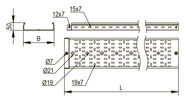- Низкий вес конструкции: Перфорация существенно сокращает вес лотков, обеспечивая легкость и удобство при монтаже.