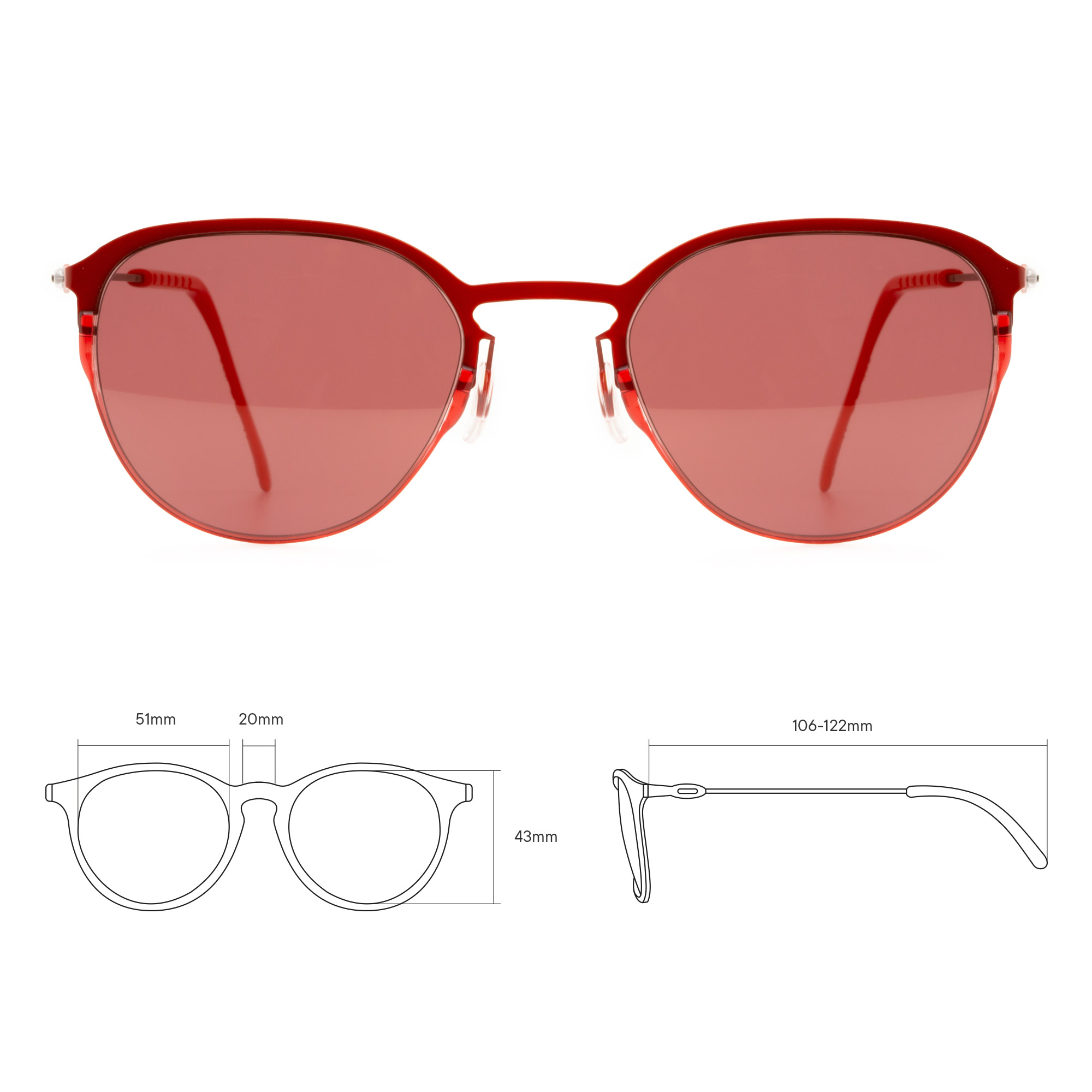 TCSNUE51010005 | Красные солнцезащитные очки из титана с красными линзами. Модель 21