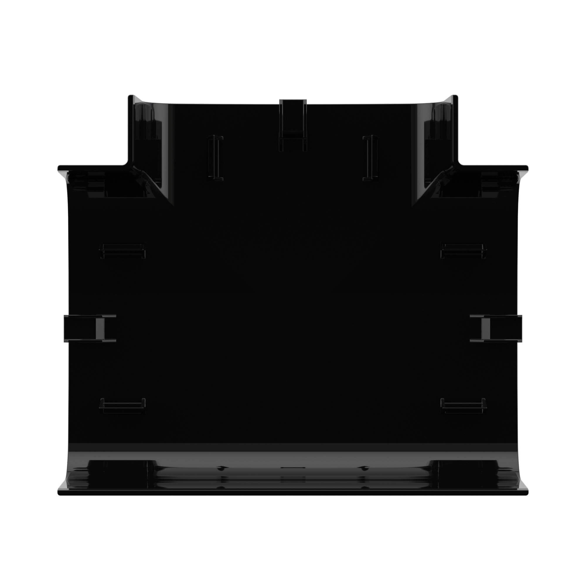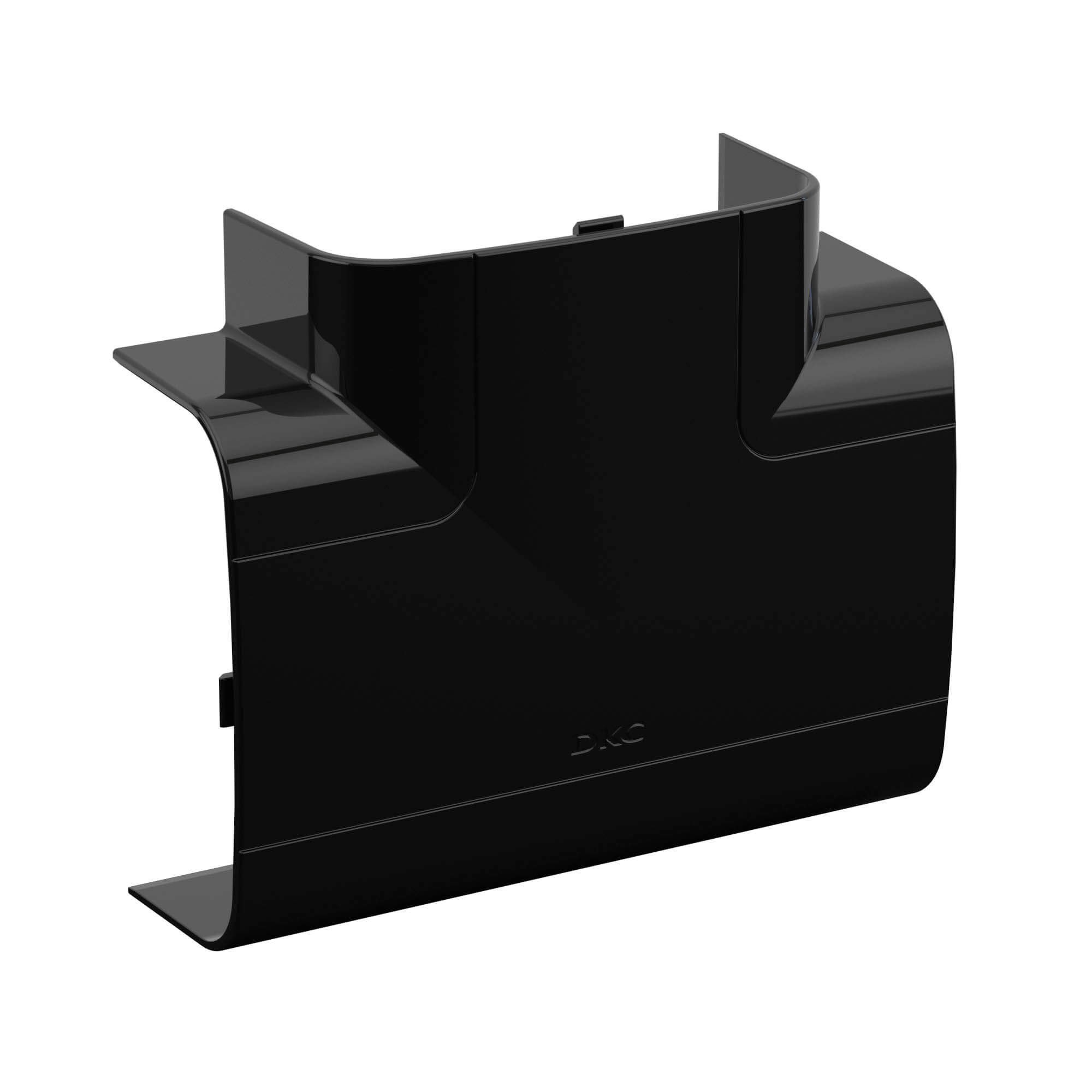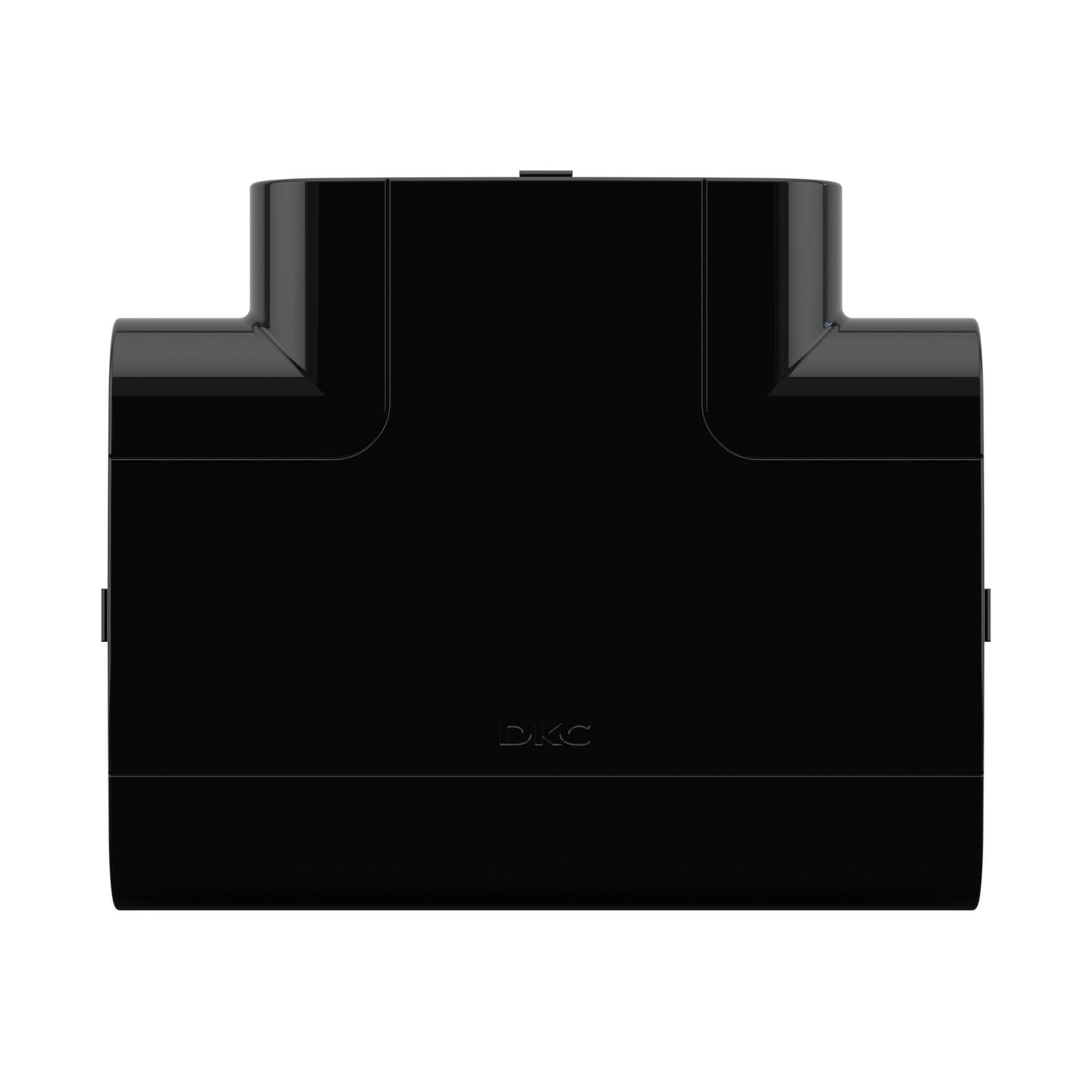 Тройник (Т-образный отвод). Назначение: декоративное оформление мест Т-образного соединения кабельных коробов. Характеристики: материал накладки – АБС-пластик; материал базы и разделителей – ПНД. Комплект поставки: внешняя декоративная накладка; внутренняя база с разделителем. Типоразмер 110х50. Цвет черный