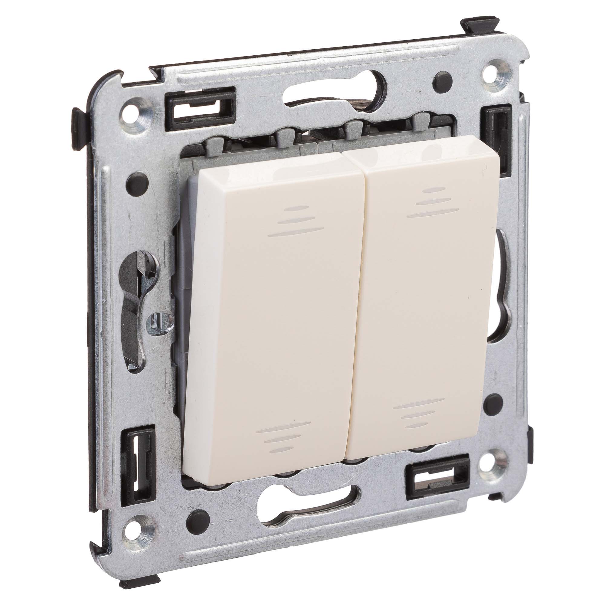 Двухклавишный выключатель ДКС применяется для того, чтобы из одной точки управлять двумя контурами освещения. Выключатель предназначен для скрытого монтажа в стену, номинальное напряжение – 230 В, номинальный ток – 16 А. Материал: металл, термопласт. Пластиковые элементы изделия имеют цвет "Ванильная дымка" – светлый оттенок из пастельной цветовой гаммы, нежный и умиротворяющий. Он отлично сочетается с теплыми цветами. Количество модулей у устройства – 2.
