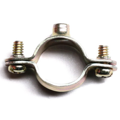 Хомут стальной с внутренней резьбой М6 для крепления пластиковых и металлических труб к поверхности стен, потолков, полов и перегородок. Диаметр - 20 мм. Материал: оцинкованная сталь. В хомуте сквозное отверстие с внуренней резьбой М6