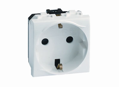 Силовая электрическая розетка штекерная, с заземлением и со шторками. Назначение: подключение оргтехники, бытовых приборов и т. п. Характеристики: в соответствии с ПУЭ, пункт 7.1.49 - имеются защитные шторки, автоматически закрывающие гнезда штепсельной розетки при вынутой вилке; имеется заземление; диаметр отверстий для ввода кабелей - 3 мм (по 2 отверстия на клемму); номинальный ток - 16 А; номинальное напряжение - 250 B. Кол-во модулей: 2. Цвет: слоновая кость