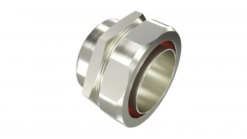 Взрывозащищенная Ex e муфта металлорукав - коробка. 40 мм. M50 х1,5Никелированная латунь. IP66/67. Используется для герметичного ввода металлорукава в корпус оборудования, шкафа, щитка, клеммной коробки, поста управления