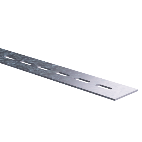 Перфорированная полоса применяется для подвеса конструкций и соединения монтажных элементов. Она имеет перфорацию для крепления по всей длине. Длина полосы - 2000 мм, ширина - 50 мм, толщина стали - 2,5 мм.