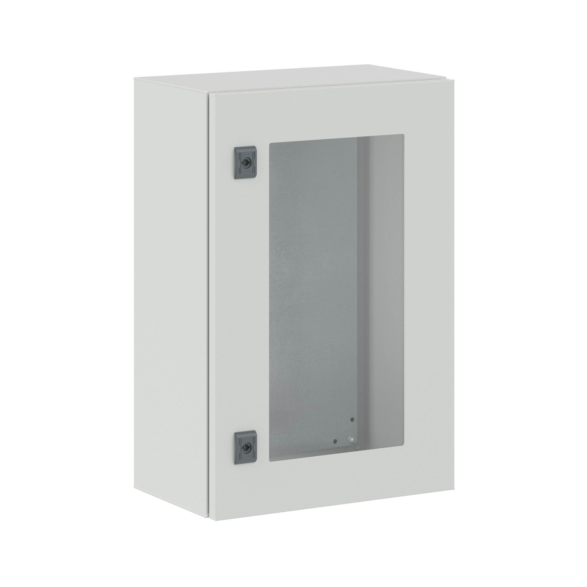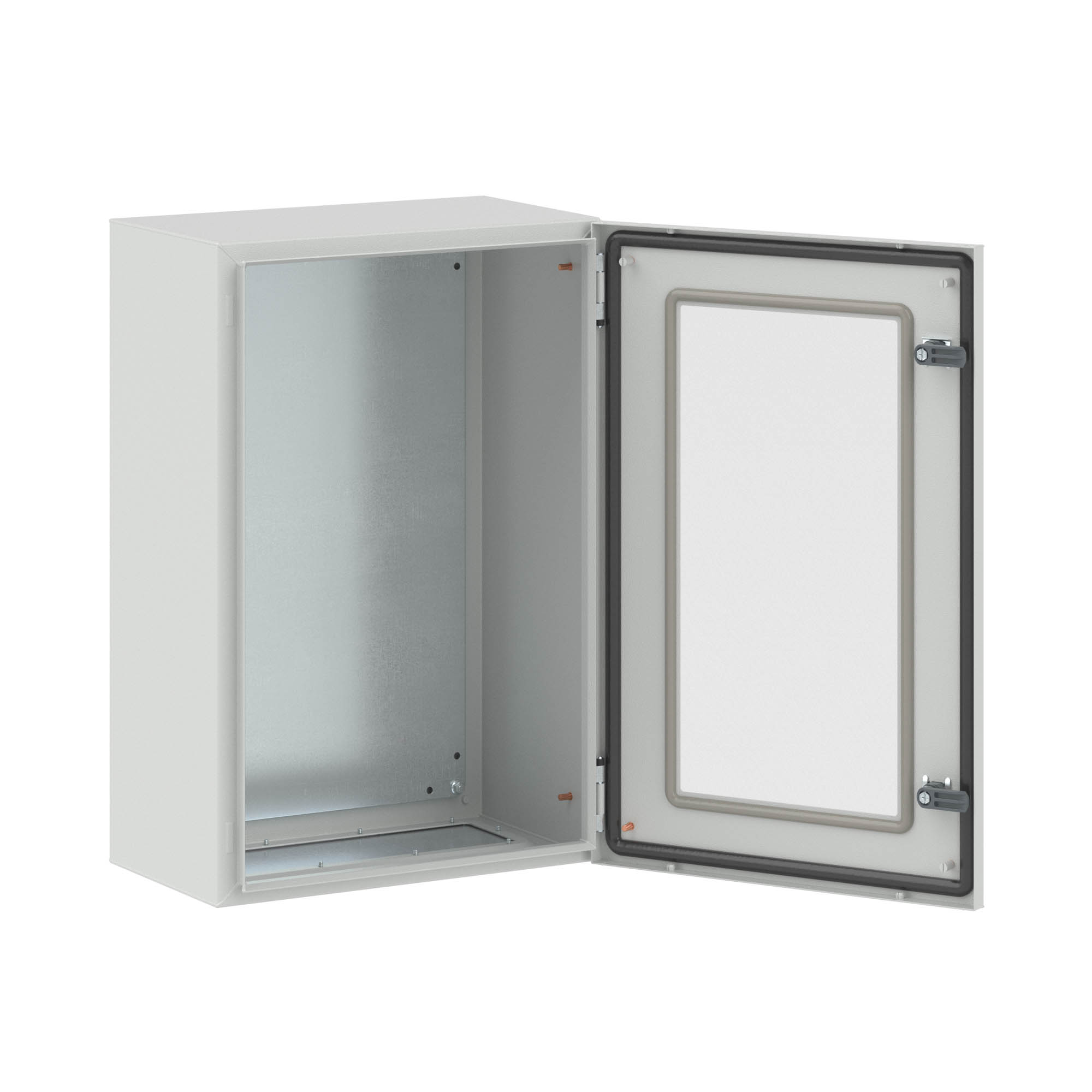 "RAM block" – система универсальных металлических корпусов – сварных и сборных, а также стоек управления. Сборные металлические шкафы СE предназначены для защиты от внешнего воздействия оборудования в системах автоматизации и распределения электроэнергии. Корпуса CE имеют всего 4 сварных шва, что повышает прочность конструкции. Корпуса изготавливаются из листовой стали толщиной 1,5 мм с порошковой полиэфирной окраской. Полиуретановый уплотнитель улучшает герметизацию (максимальная степень пыле- и влагозащиты - IP 65 - IP 66). В комплект поставки корпусов входят: фланец, монтажные аксессуары, монтажная плата. По умолчанию шкафы укомплектованы стандартным замком с личинкой под ключ с двойной бородкой, однако замок при необходимости может быть заменен. Сборные металлические шкафы CE соответствуют российским стандартам, они могут устанавливаться в сейсмоопасных зонах и имеют необходимые сертификаты. Корпуса с прозрачной дверью чаще всего используются в системах мониторинга, защиты и автоматизации. Уровень ударопрочности корпусов - IK 10. Закаленное стекло устойчиво к повреждениям. Габариты навесного шкафа: 600х400х250 мм.