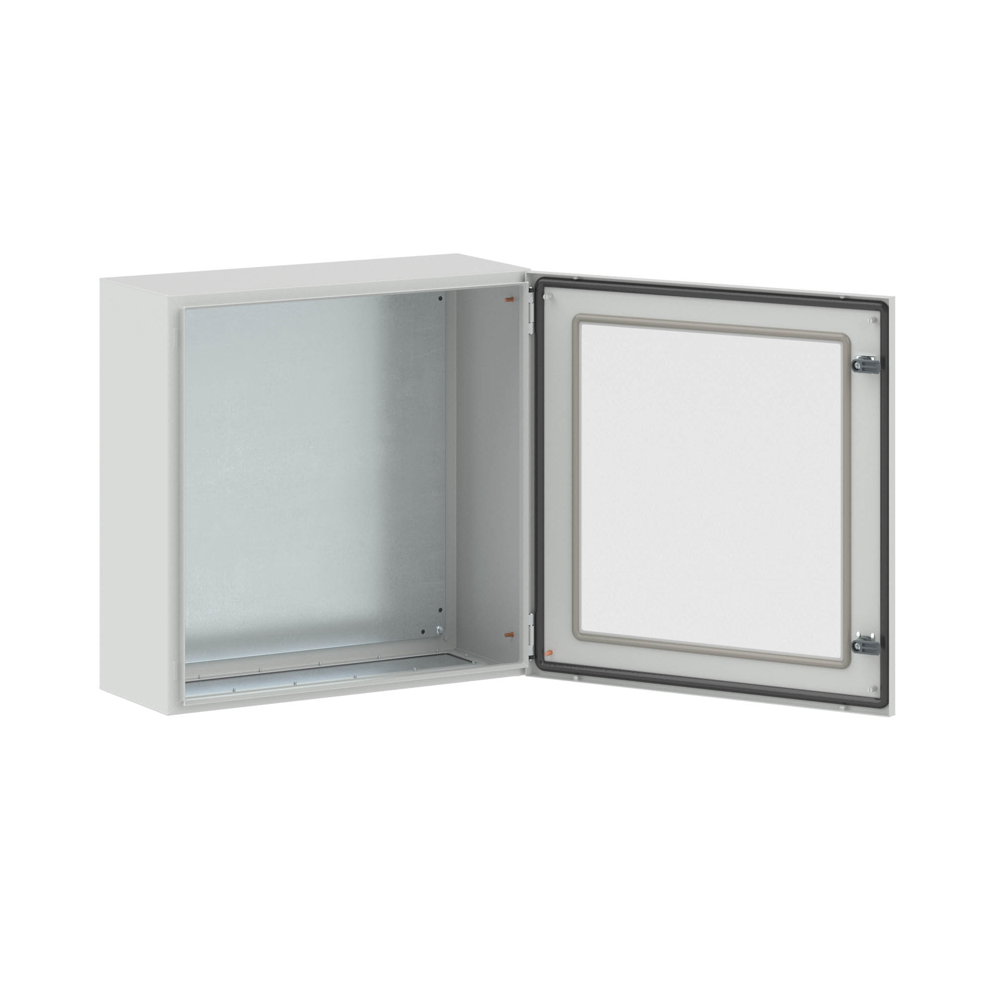 "RAM block" – система универсальных металлических корпусов – сварных и сборных, а также стоек управления. Сборные металлические шкафы СE предназначены для защиты от внешнего воздействия оборудования в системах автоматизации и распределения электроэнергии. Корпуса CE имеют всего 4 сварных шва, что повышает прочность конструкции. Корпуса изготавливаются из листовой стали толщиной 1,5 мм с порошковой полиэфирной окраской. Полиуретановый уплотнитель улучшает герметизацию (максимальная степень пыле- и влагозащиты - IP 65 - IP 66). В комплект поставки корпусов входят: фланец, монтажные аксессуары, монтажная плата. По умолчанию шкафы укомплектованы стандартным замком с личинкой под ключ с двойной бородкой, однако замок при необходимости может быть заменен. Сборные металлические шкафы CE соответствуют российским стандартам, они могут устанавливаться в сейсмоопасных зонах и имеют необходимые сертификаты. Корпуса с прозрачной дверью чаще всего используются в системах мониторинга, защиты и автоматизации. Уровень ударопрочности корпусов - IK 10. Закаленное стекло устойчиво к повреждениям. Габариты навесного шкафа: 600х600х250 мм.