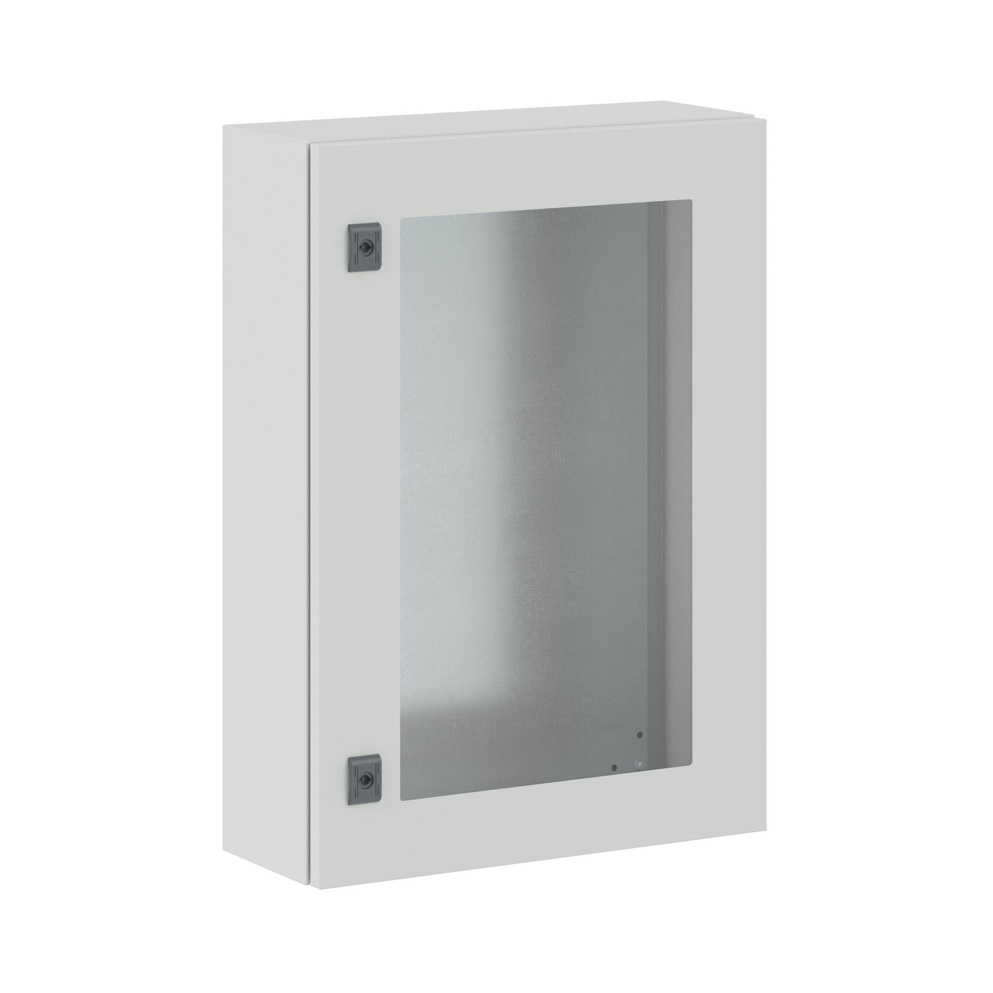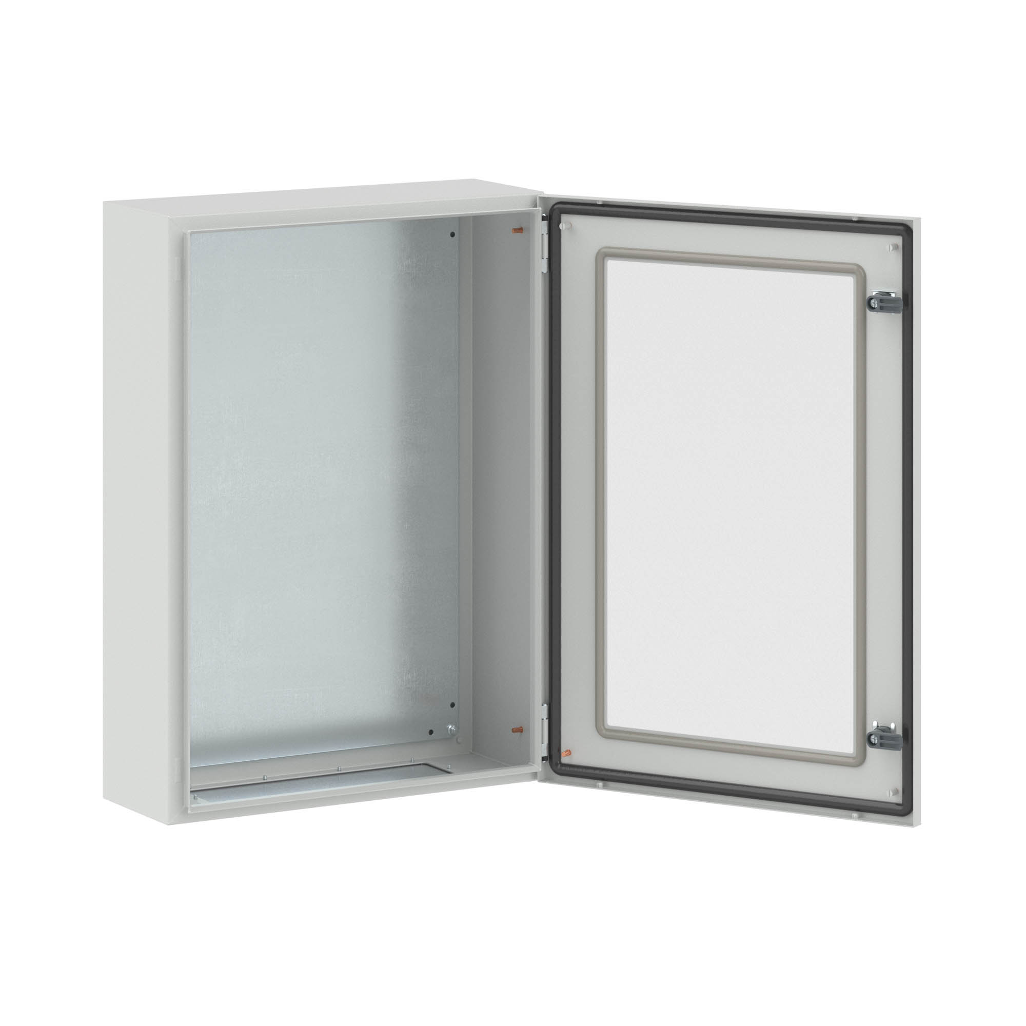 "RAM block" – система универсальных металлических корпусов – сварных и сборных, а также стоек управления. Сборные металлические шкафы СE предназначены для защиты от внешнего воздействия оборудования в системах автоматизации и распределения электроэнергии. Корпуса CE имеют всего 4 сварных шва, что повышает прочность конструкции. Корпуса изготавливаются из листовой стали толщиной 1,5 мм с порошковой полиэфирной окраской. Полиуретановый уплотнитель улучшает герметизацию (максимальная степень пыле- и влагозащиты - IP 65 - IP 66). В комплект поставки корпусов входят: фланец, монтажные аксессуары, монтажная плата. По умолчанию шкафы укомплектованы стандартным замком с личинкой под ключ с двойной бородкой, однако замок при необходимости может быть заменен. Сборные металлические шкафы CE соответствуют российским стандартам, они могут устанавливаться в сейсмоопасных зонах и имеют необходимые сертификаты. Корпуса с прозрачной дверью чаще всего используются в системах мониторинга, защиты и автоматизации. Уровень ударопрочности корпусов - IK 10. Закаленное стекло устойчиво к повреждениям. Габариты навесного шкафа: 700х500х200 мм.