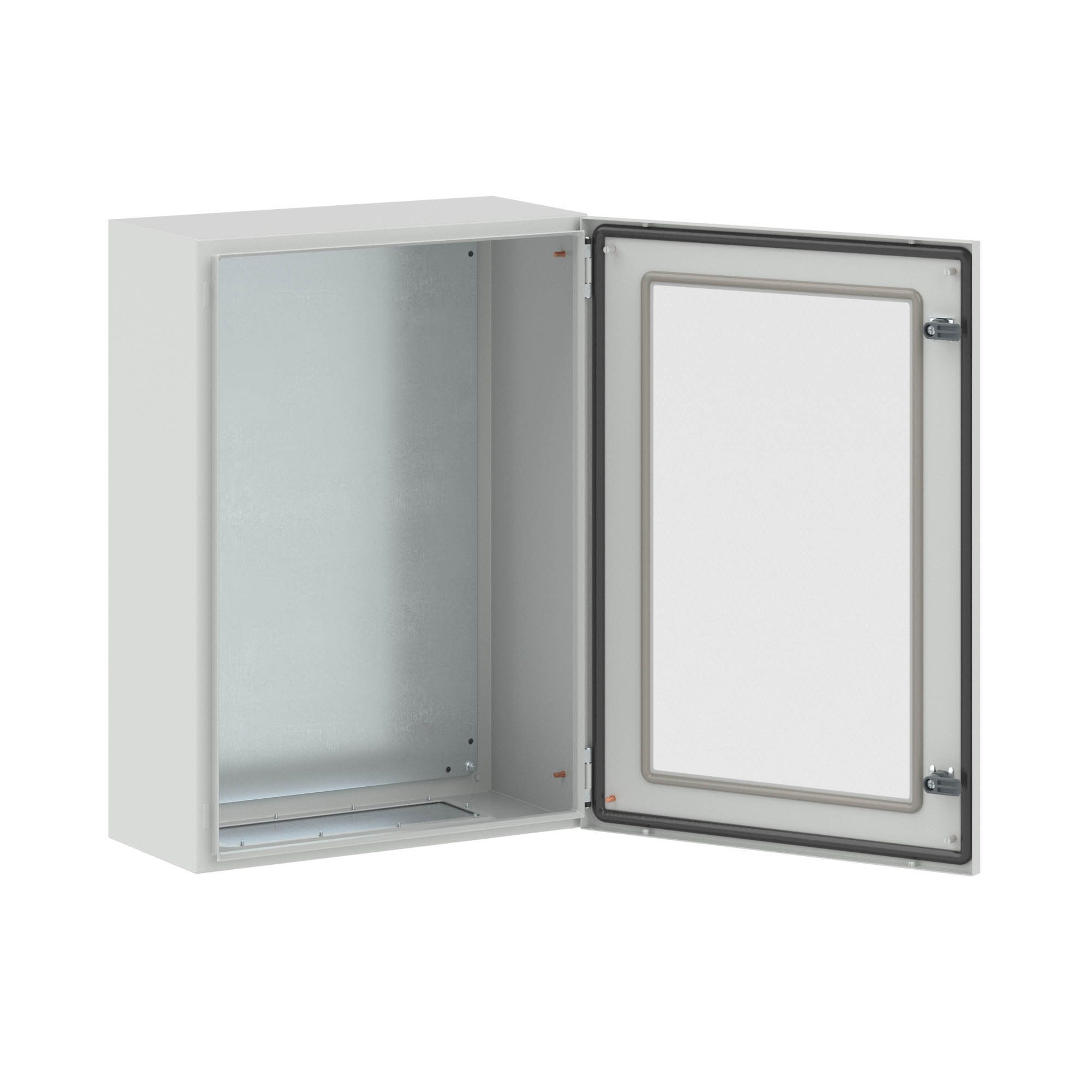 "RAM block" – система универсальных металлических корпусов – сварных и сборных, а также стоек управления. Сборные металлические шкафы СE предназначены для защиты от внешнего воздействия оборудования в системах автоматизации и распределения электроэнергии. Корпуса CE имеют всего 4 сварных шва, что повышает прочность конструкции. Корпуса изготавливаются из листовой стали толщиной 1,5 мм с порошковой полиэфирной окраской. Полиуретановый уплотнитель улучшает герметизацию (максимальная степень пыле-и влагозащиты-IP 65-IP 66). В комплект поставки корпусов входят: фланец, монтажные аксессуары, монтажная плата. По умолчанию шкафы укомплектованы стандартным замком с личинкой под ключ с двойной бородкой, однако замок при необходимости может быть заменен. Сборные металлические шкафы CE соответствуют российским стандартам, они могут устанавливаться в сейсмоопасных зонах и имеют необходимые сертификаты. Корпуса с прозрачной дверью чаще всего используются в системах мониторинга, защиты и автоматизации. Уровень ударопрочности корпусов-IK 10. Закаленное стекло устойчиво к повреждениям. Габариты навесного шкафа: 700х500х250 мм.