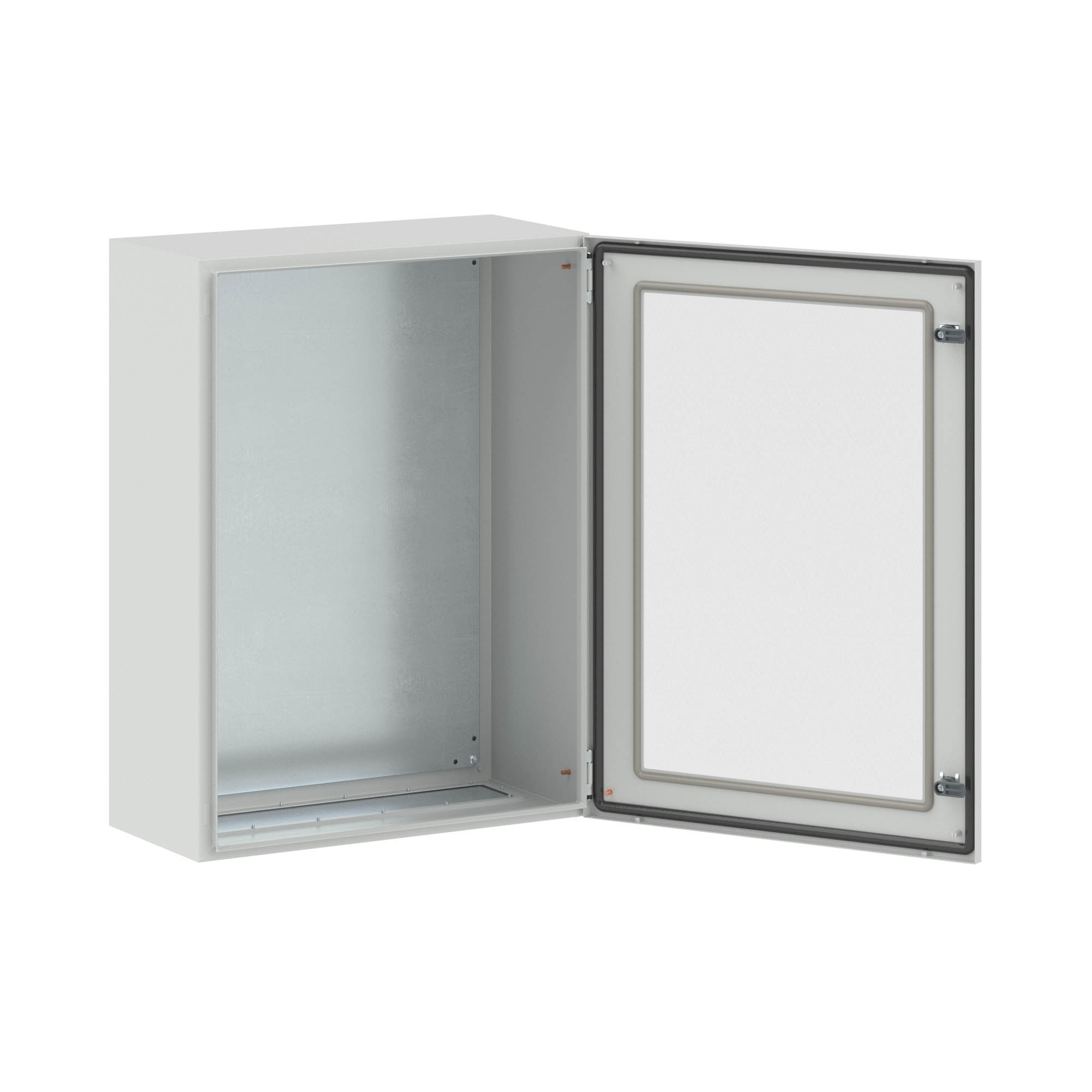"RAM block" – система универсальных металлических корпусов – сварных и сборных, а также стоек управления. Сборные металлические шкафы СE предназначены для защиты от внешнего воздействия оборудования в системах автоматизации и распределения электроэнергии. Корпуса CE имеют всего 4 сварных шва, что повышает прочность конструкции. Корпуса изготавливаются из листовой стали толщиной 1,5 мм с порошковой полиэфирной окраской. Полиуретановый уплотнитель улучшает герметизацию (максимальная степень пыле-и влагозащиты-IP 65-IP 66). В комплект поставки корпусов входят: фланец, монтажные аксессуары, монтажная плата. По умолчанию шкафы укомплектованы стандартным замком с личинкой под ключ с двойной бородкой, однако замок при необходимости может быть заменен. Сборные металлические шкафы CE соответствуют российским стандартам, они могут устанавливаться в сейсмоопасных зонах и имеют необходимые сертификаты. Корпуса с прозрачной дверью чаще всего используются в системах мониторинга, защиты и автоматизации. Уровень ударопрочности корпусов-IK 10. Закаленное стекло устойчиво к повреждениям. Габариты навесного шкафа: 800х600х300 мм.