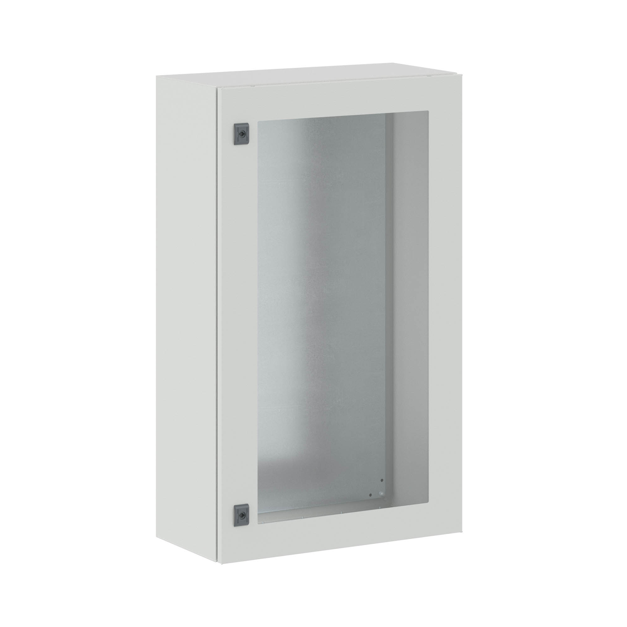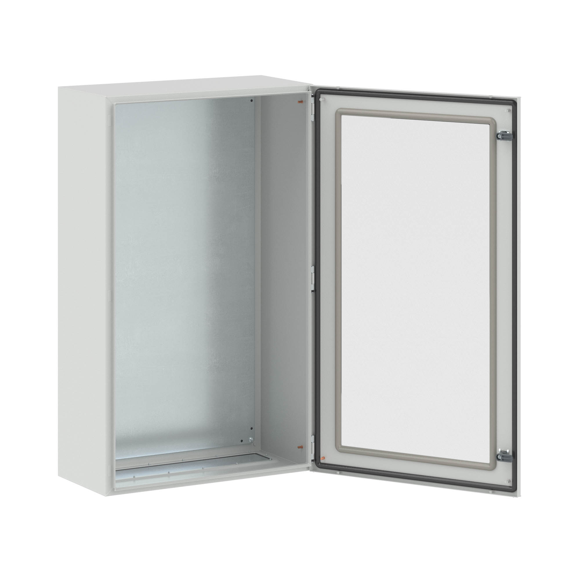"RAM block" – система универсальных металлических корпусов – сварных и сборных, а также стоек управления. Сборные металлические шкафы СE предназначены для защиты от внешнего воздействия оборудования в системах автоматизации и распределения электроэнергии. Корпуса CE имеют всего 4 сварных шва, что повышает прочность конструкции. Корпуса изготавливаются из листовой стали толщиной 1,5 мм с порошковой полиэфирной окраской. Полиуретановый уплотнитель улучшает герметизацию (максимальная степень пыле-и влагозащиты-IP 65-IP 66). В комплект поставки корпусов входят: фланец, монтажные аксессуары, монтажная плата. По умолчанию шкафы укомплектованы стандартным замком с личинкой под ключ с двойной бородкой, однако замок при необходимости может быть заменен. Сборные металлические шкафы CE соответствуют российским стандартам, они могут устанавливаться в сейсмоопасных зонах и имеют необходимые сертификаты. Корпуса с прозрачной дверью чаще всего используются в системах мониторинга, защиты и автоматизации. Уровень ударопрочности корпусов-IK 10. Закаленное стекло устойчиво к повреждениям. Габариты навесного шкафа: 1000х600х300 мм.