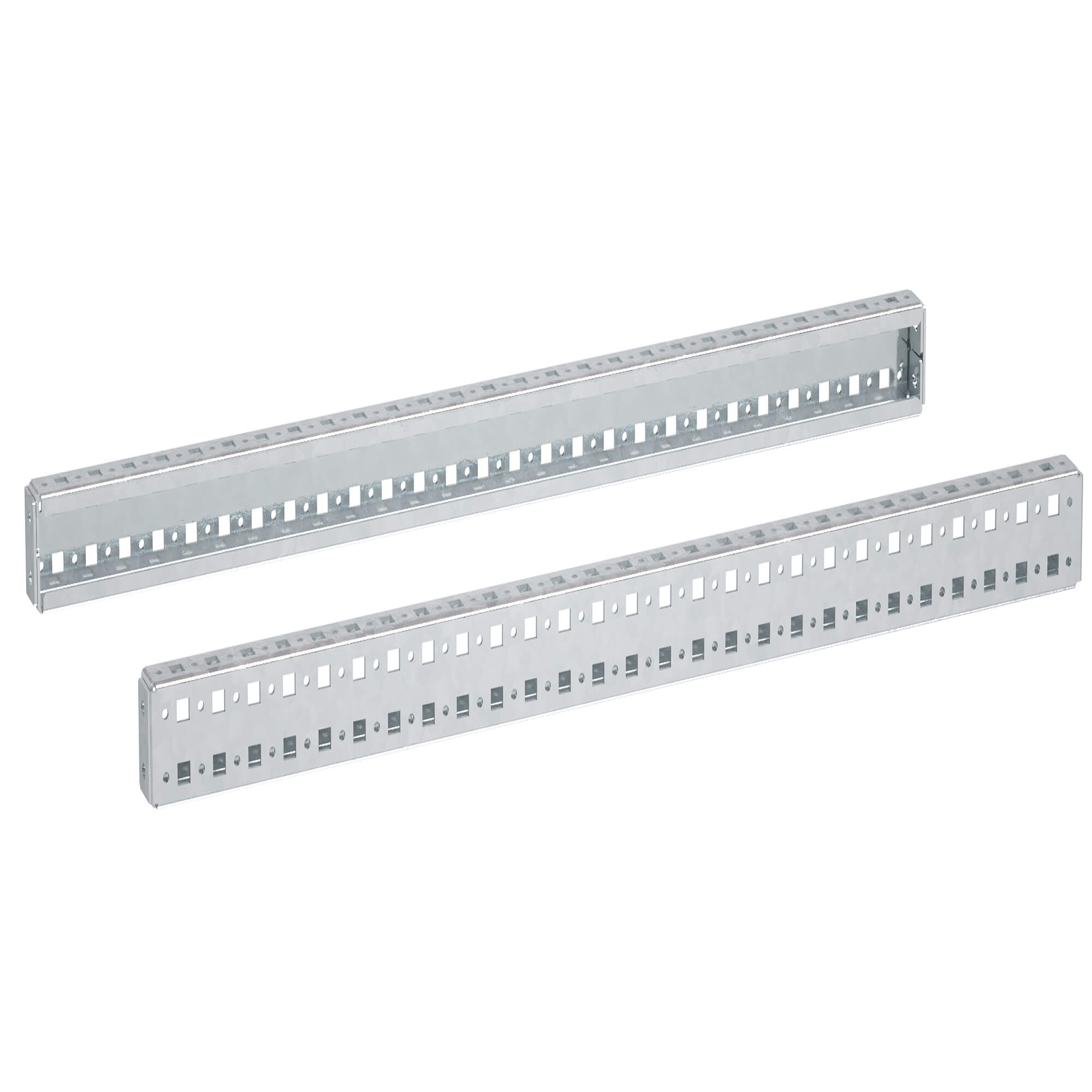 Рейки поперечные усиленные предназначены для организации тяжёлых шинных трасс и другого тяжёлого оборудования. Имеют две монтажные перфорированные плоскости. Монтаж осуществляется между рейками, установленными по глубине шкафа. Подходят для шкафа шириной 1000 мм.